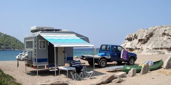 Die in der Kabine integrierten Hubstützen ermöglichen schnelles und einfaches Auf- und Absetzen der Wohnkabine. Dadurch bleiben Sie auch am Urlaubsort flexibel und müssen einen optimalen Stellplatz nicht preisgeben. Feste form- und kraftschlüssige Verbindung über einen Stahlzwischenrahmen mit dem Chassis und ein tiefer Schwerpunkt bewirken ein wesentlich stabileres Fahrverhalten im Vergleich mit herkömmlichen Aufsetzkabinen. Die Wohnkabine nutzt die gesamte Grundfläche, da die Pritsche mit ihren Bordwänden vorher demontiert wird. Daraus resultieren optimierte Grundrisse und viel mehr Stauraum. Ein bequemer, seitlicher Einstieg ermöglicht Grundrisse wie z. B. eine Hecksitzgruppe und den Einbau der sehr beliebten, grossen Heckklappe. Beim Aufsetzen hilft eine Zentriervorrichtung beim Positionieren der Kabine, was allzu präzises Rangieren überflüssig macht.
