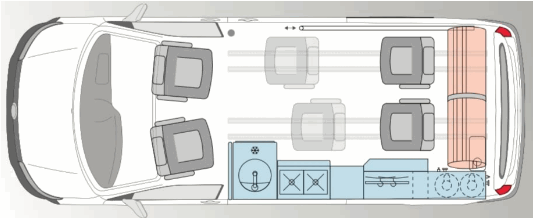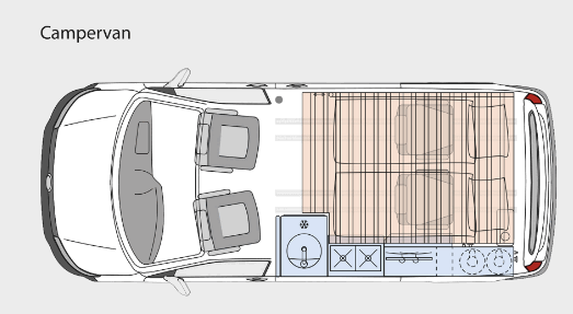 Volkswagen T6.1 Kastenwagen, Sitzplätze 4 (+2), Schlafplätze 2 (+2), Dachversionen: Aufstelldach, Halbhohes Dach, Hochdach Polyroof